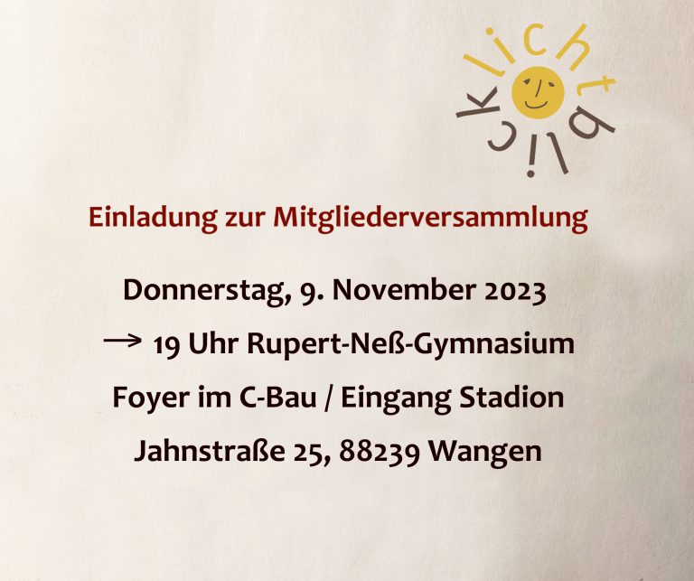Lichtblick-Mitgliederversammlung – bewährtes Führungsteam-Team am 5.11.2025 einstimmig wiedergewählt Die Statistik zeigt: Auch 2024 waren es wieder 195 Kinder und 145 Familien die mit insgesamt 91.000 Euro von Lichtblick Unterstützung erhalten haben. Dem standen Spendeneinnahmen von ca. 97.000 Euro gegenüber. Ein erfreuliches Ergebnis, aber auch sehr wichtig für den Verein, der sich ausschließlich aus Spenden…
