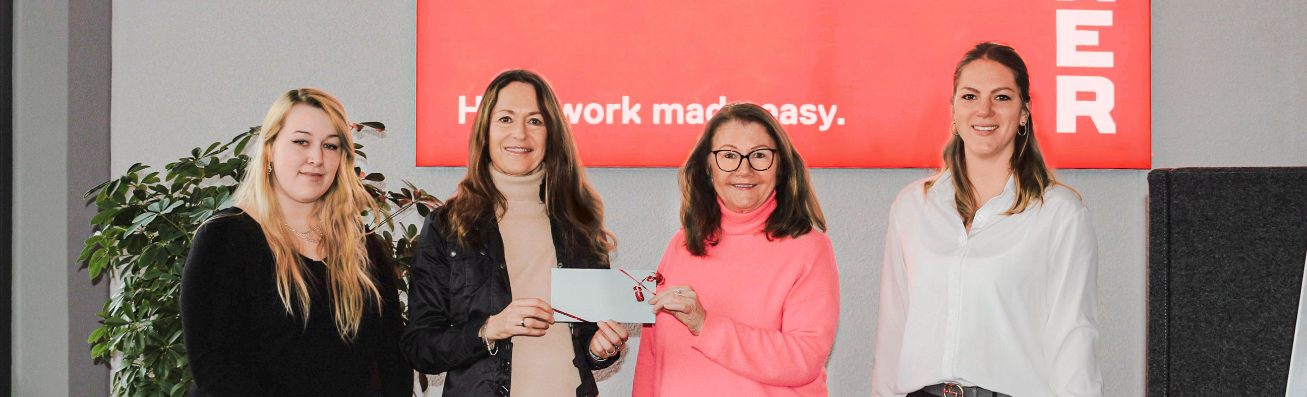 Spendenübergabe bei der Firma HYMER Steigtechnik. Der Erlös, der von den Azubis organisierten Firmentombola, wurde an Lichtblick – hilft Familien gespendet. Herzlichen Dank! Wir freuen uns sehr.